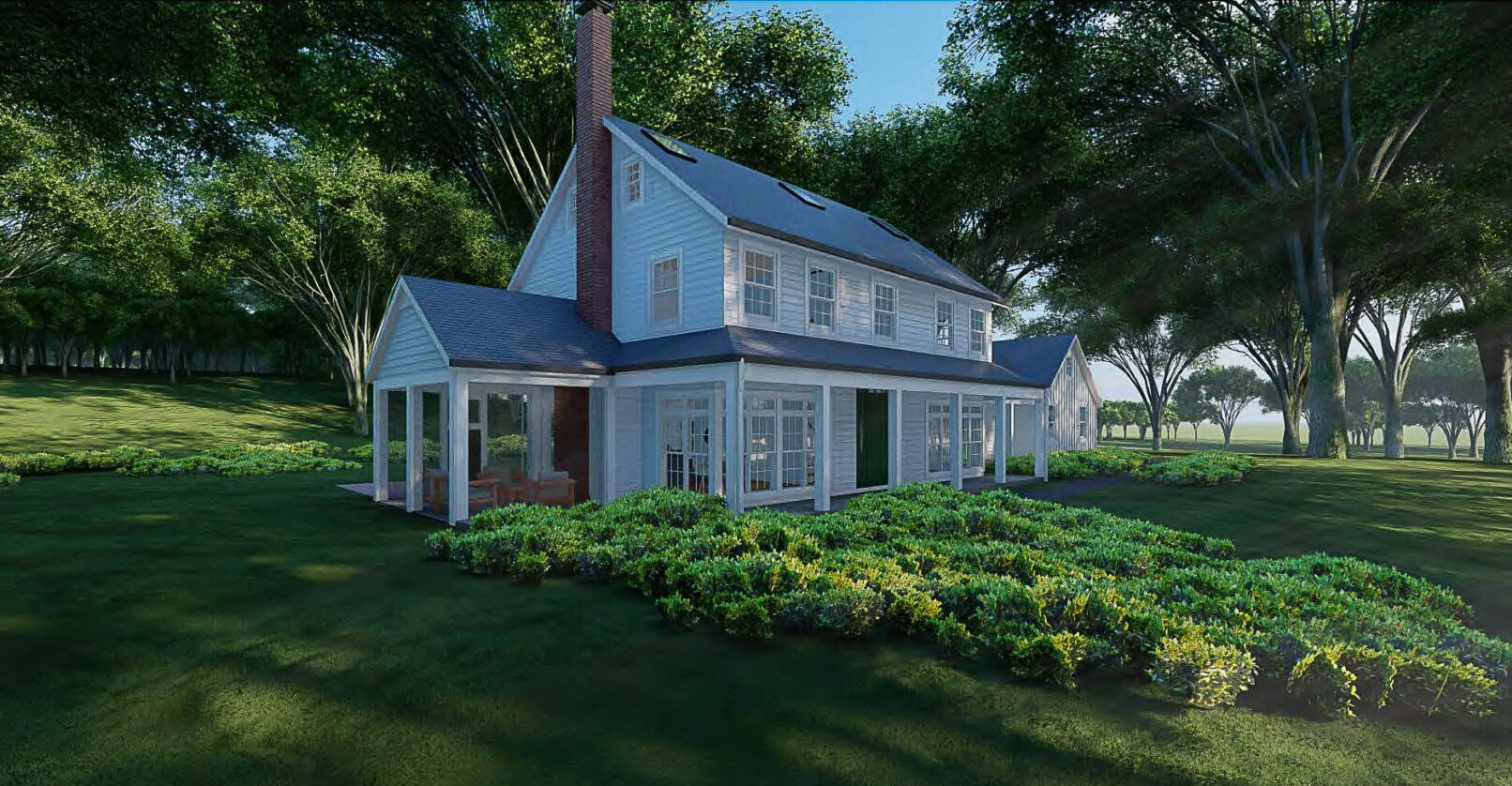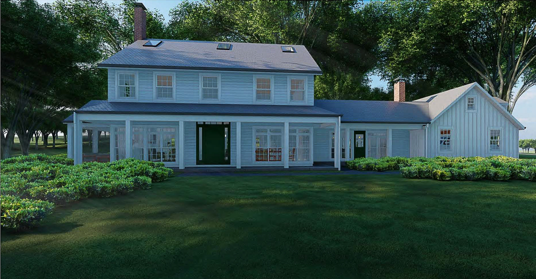 Full-gut renovation of existing single family colonial residence. New wraparound porch and garage dormers. Completed 2024.