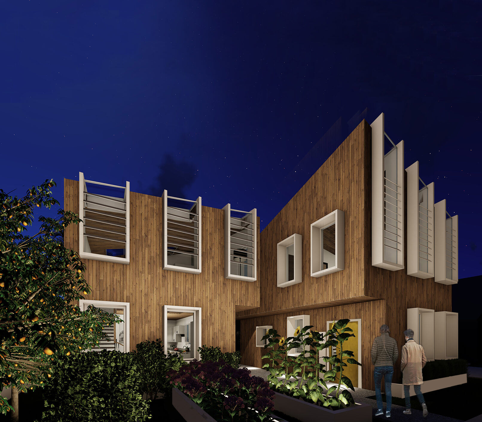 Contextual elements and formal inspiration for the units are derived from the many existing bungalow housing and gable-roof single family houses that LA has to offer. Incorporating elemental motifs from traditional styles, this formal decomposition of the archetypal “home” within the neighborhood context delivers modern architecture and amenities while still maintaining the sense of home and appropriate scale.
